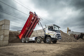 The new trucks comprise FL skip-loaders, FMX tippers and FH tractor units. The final six skip wagons, seven tippers and a tractor unit arrived recently on 25-plates. All are of a high specification inside and out, as is usual for this company. J O’D Group’s fleet has always been largely Volvo-based, according to its transport manager, Kevin Ryan. “We’re big fans of Volvos,” he confirms.