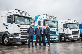 Bathgate-based, Blacks Haulage Solutions is a business that breaks some stereotypes in the road transport industry. Figures suggest that the average age of a UK truck driver is 54 years, while transport managers and business owners make up a large proportion of the same age group. Refreshingly, this Bathgate-based operation is run by a dynamic team of younger individuals, who can still tap into the expertise available from senior family members or long serving staff, when required. Owners Stuart and Shelli Black, supported by operations director Adrian Pullar and transport manager, Jakki Loudon make an impressive group, who are all hungry for progress and success.