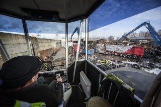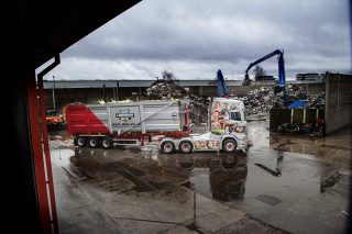 The company was established 50 years ago, in 1970, when Jack Davidson set up a skip hire and waste management company, operating a couple of Seddon-Atkinson eight-wheelers. Jack’s son, Jamie, joined the company a few years later, and then, sadly, found himself at the helm at the age of just 26 when his father died unexpectedly. Although he’s the managing director, he’s very hands on, and spends most of his day at the controls of one of three scrap-handlers in the yard. His son, Lee, works with his father in the yard, and Lee’s brother Luke, along with his sister, Jaimee-Lee, works in the office.