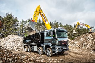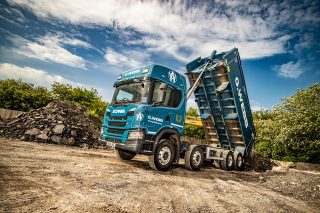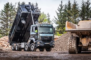 Tipper trucks aren’t known by those in the industry for their relaxing properties, but that’s because if you’re driving, planning or maintaining them, time is usually of the essence. They don’t tend to sit around for long. But if you ever get the chance to take some time out and watch them at work, it can be slightly hypnotic and surprisingly therapeutic. One lorry, one load isn’t much to write about, but if you get the opportunity to watch a squadron of them as they repeat the process over a day, it’s much more impressive than you might think. We’ve become numb to what these marvellous machines can actually achieve, 20 tonnes (well, about 19.5 these days) at a time. Whether it’s muck coming out of a building site, or Type 1 coming in, as the eight wheelers march in and out, load after load, hour after hour, great things start to take shape. This model of steady, gradual progress actually applies as a whole to A Johnstone Haulage of Bathgate in West Lothian.