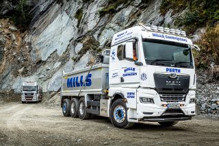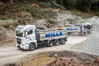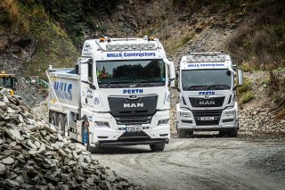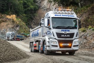 PERTH BASED, TIPPER OPERATOR AND QUARRY OWNER, MILLS CONTRACTORS LIMITED HAS TAKEN DELIVERY OF THE UK’S FIRST MAN TGX TRIDEM RIGID. BULK & TIPPER TRAVELS TO THE FAIR CITY FOR A CHAT WITH OWNERS AND BROTHERS, STEVIE AND SEAN MILLS.